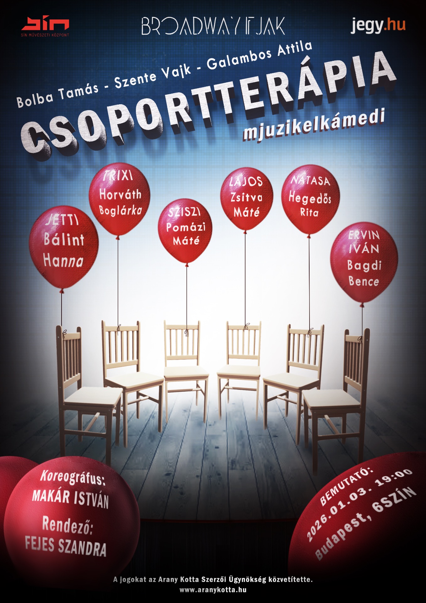 Hat vadidegen érkezik egy különös csoportterápiára, mindannyian más-más problémával és titokkal. A helyzet azonban hamar fordulatot vesz: a terapeuta nem érkezik meg, így a résztvevők kénytelenek egymással szembenézni – és önmagukkal is. A félreértések, titkok és váratlan kapcsolódások sorra bontakoznak ki, miközben a humor és a zene végigkíséri őket azon az úton, amely közelebb visz a megértéshez, a szeretethez és talán a gyógyuláshoz is. Egy szellemes, könnyed, mégis szívhez szóló magyar musical, amely megmutatja, hogy néha a legjobb terápia maga az emberi kapcsolódás.